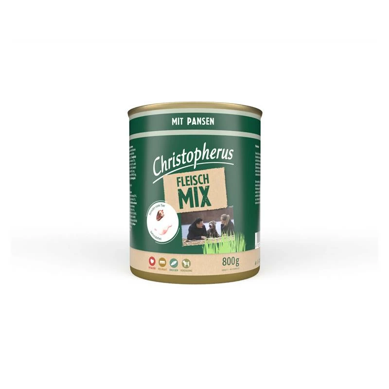 Der Christopherus Fleischmix mit Pansen wird mit frischem Pansen sowie Fleisch und Innereien vom Huhn und Rind hergestellt.