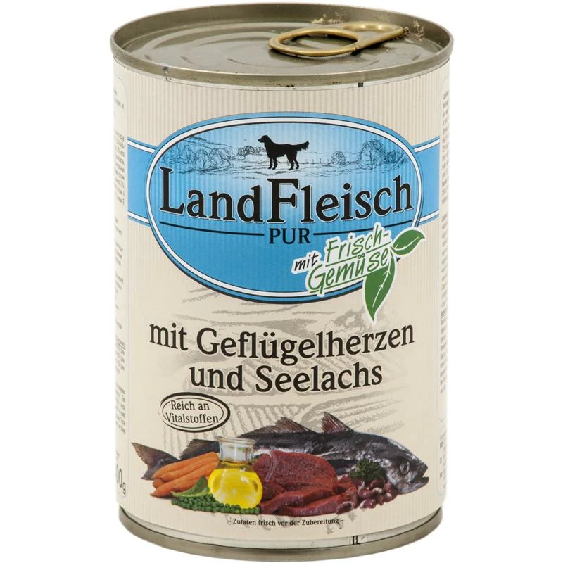LandFleisch Pur Geflügelherzen und Seelachs mit Frischgemüse – Hochqualitatives Hundenassfutter zu bezahlbarem Preis