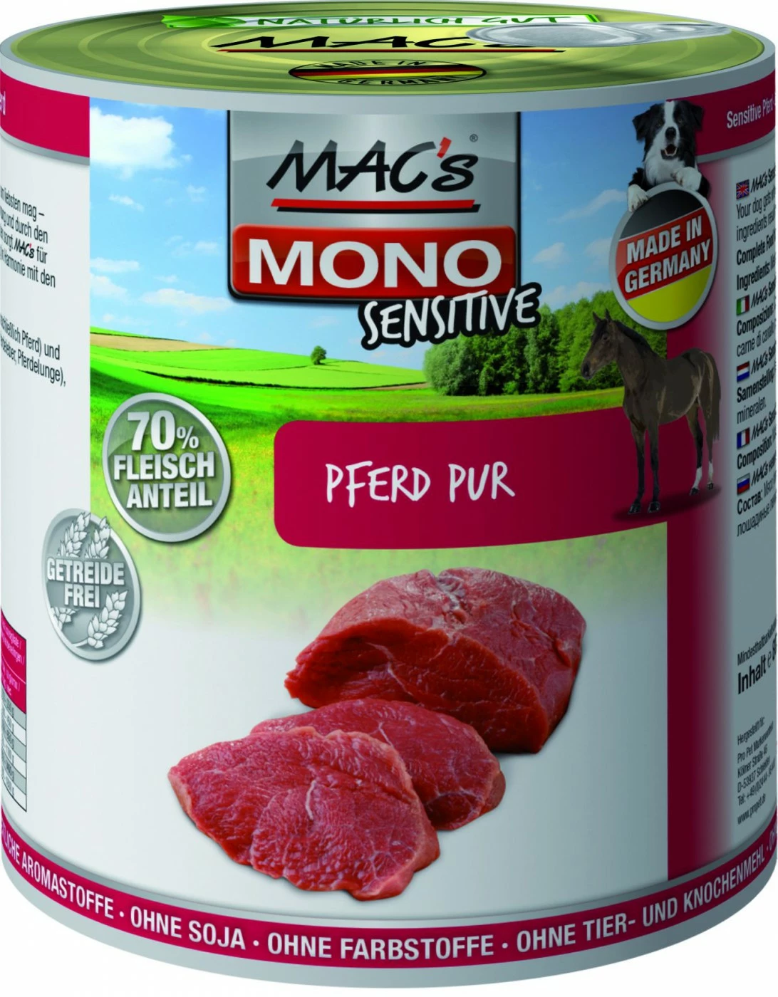 MACs Dog Mono Sensitive Pferd Pur – Getreidefreies Nassfutter aus purem Pferdefleisch für fütterungssensible Hunde