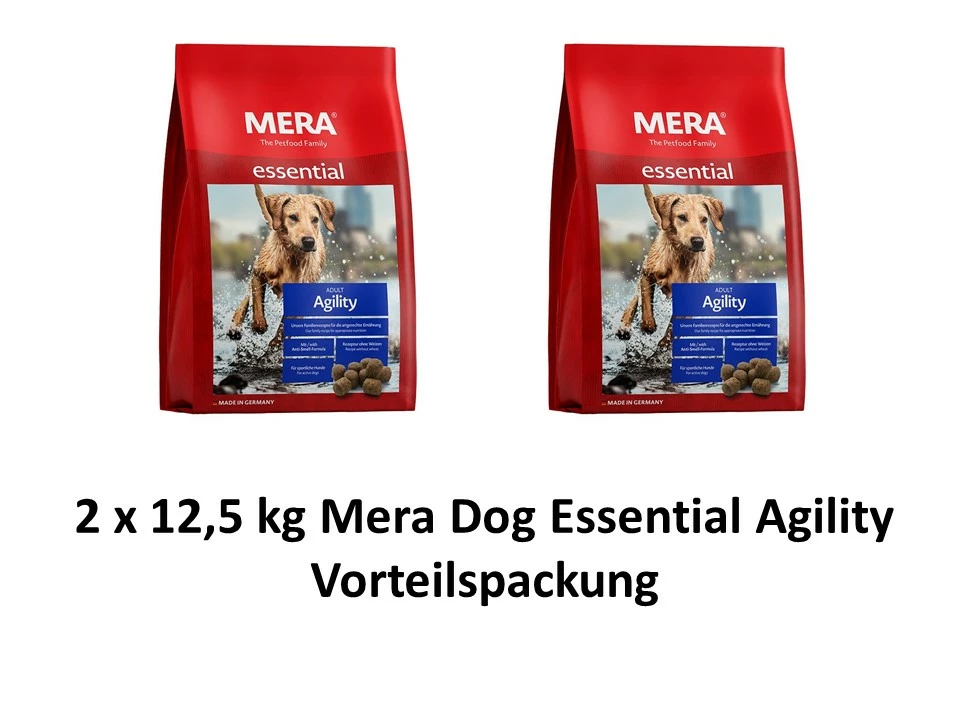 Sind Sie auf der Suche nach Mera Dog Essential Agility im 2x 12,5 kg Vorteilspack werden Sie bei zooheld.de fündig. Bei uns bekommen Sie alles, was Sie für die Haltung und Pflege Ihres Haustieres benötigen. Ob Hund, Katze, Fische, Nager, Vögel oder Pferde, bei uns können Sie Ihren kompletten Tierbedarf kaufen. Wir führen neben Nass- und Trockenfutter auch Spezialfutter für Problemfälle. Sie werden bei uns auch immer günstige Angebote finden und praktische Vorratspackungen. Ab einem Bestellwert von 29 Euro liefern wir Ihnen die Ware versandkostenfrei an Ihre Wunschadresse. Natürlich können Sie die Artikel innerhalb von 30 Tagen zurückgeben, falls Sie Ihnen nicht gefallen. Sehen Sie sich einfach in unserem großen Sortiment um und finden Sie alles was Sie benötigen. Bei Fragen und Anregungen steht Ihnen unser Support zur Verfügung, der Ihnen gerne weiterhilft.